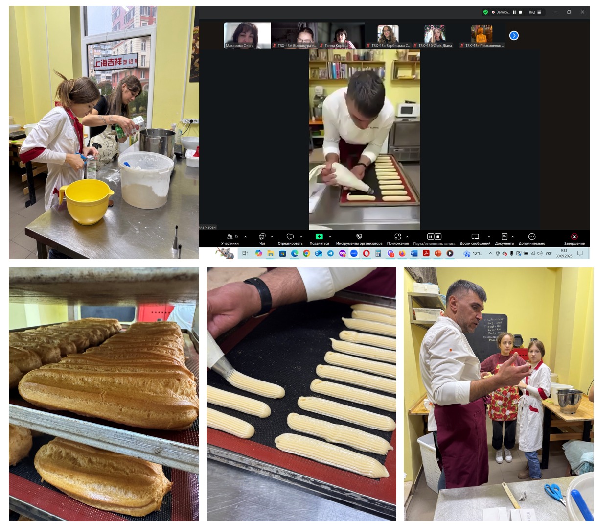 Здобувачі 4 курсу СВО Бакалавр освітньої програми “Технології хліба, кондитерських, макаронних виробів та харчоконцентратів” у рамках вивчення освітнього компоненту «Технологія кондитерського виробництва з КР» поглиблювали теоретичні знання та набували практичних навичок з технології борошняних кондитерських виробів, а саме еклерів, у виробничих умовах на пекарні-кондитерській «Esperer». Заняття відбувалося у змішаному форматі, що дало можливість долучитися всім охочим.