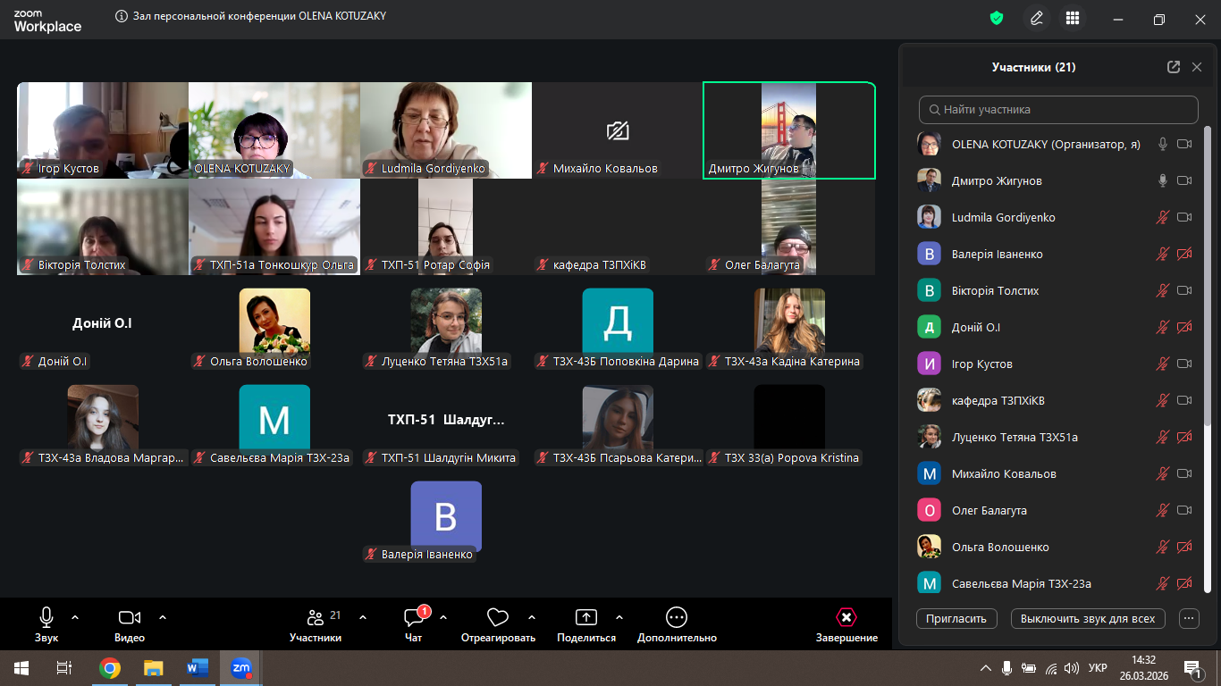 26 березня о 14.30 online на базі платформи ZOOM відбулось засідання секції «Технології зернових продуктів, хліба і кондитерських виробів» в рамках щорічної Наукової конференції здобувачів вищої освіти.