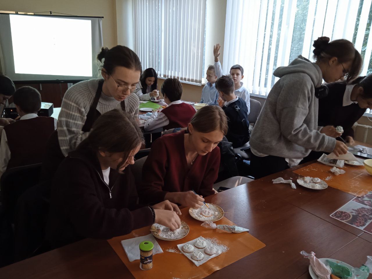 – 17 листопада 2023 р. для учнів 9 класу Одеського ліцею “Приморський” проведено майстер-клас з виготовлення сирцевих пряників з частковою заміною пшеничного борошна на борошно зі спельти з різним видом оздоблення; – 4 грудня 2023 р. відбувся майстер-клас “Солодкі візерунки” по виготовленню здобного печива та його оздоблення для старшокурсників Парламенту Одеської міської ради. На початку зустрічі гості були ознайомлені з теоретичними основами виготовлення випечених та оздоблювальних напівфабрикатів. Потім школярі самостійно виготовляли печиво та декорували його цукровою глазур’ю, а корзинки оздоблювали білковим кремом. – 6 лютого 2024 р. викладачі та здобувачі 4го курсу СВО бакалавр освітньої програми “Технології хліба, кондитерських, макаронних виробів та харчоконцентратів” провели для школярів майстер клас по виготовленню ласощів; – 16 лютого 2024 року проведено майстер-клас для школярів Приморського ліцею, на якому наші гості виготовляли кошики оздоблені білковим кремом, а також прикрашали пряники айсингом; – 7 та 8 березня проведено майстер-класи для школярів ліцею 117, м. Одеса по виготовленню кейк-попсів, трендового десерту у молоді. Під час проведення майстер-класів у школярів була можливість поспілкуватися зі студентами різних курсів ОП «Технології хліба, кондитерських , макаронних виробів та харчоконцентратів» та поставити питання щодо майбутнього навчання. При спілкуванні наші студенти поділилися досвідом навчання та розповіли про дисципліни, які вивчають. – 14 березня 2024 р. проведено майстер-клас для учнів 10-11 класів ліцеїв №15 та № 5 м. Одеси на тему: «Обирай зернові батончики правильно». Учні прийняли участь в аналізі виробництва зернових батончиків та в дегустації зразків для формування споживчого світогляду, визначили якісні та корисні властивості зернових батончиків. Спонсором майстеркласу стала компанія FLАRINO; – 19 березня здобувачі і викладачі кафедри завітали до Одеського ліцею №7. Під час зустрічі був підписаний договір про співпрацю навчальних закладів та проведено майстер-клас для учнів 10-11 класів даного ліцею «Зернові культури України»; – 01 травня 2024 р. напередодні Великодніх свят викладачі кафедри та студенти освітньої програми “Технології хліба, кондитерських, макаронних виробів та харчоконцентратів” Аліна Заплітна, Аміна Абдуллоєва, Тішкевич Олена, Анастасія Шинкарук, Максим Ющин, Світлана Вербицька та Марія Калугіна у рамках наукового гуртка, проєкту Craft Taste Lab провели майстер- клас для учнів ліцею «Надія», на якому виготовляли декор для пасочок – шоколадні гнізда з глазурованими різнокольровою шоколадною глазуррю яйцями, гілочки верби, квіточки та пасхальні кролики з маршмелоу; – 03 червня 2024 р. проведено майстер-клас «Солодкі хмаринки» для учнів Приморського ліцею. Школярі прийняли участь у приготуванні та дегустації власноруч виготовлених виробів з піноподібної маси типу маршмеллоу.