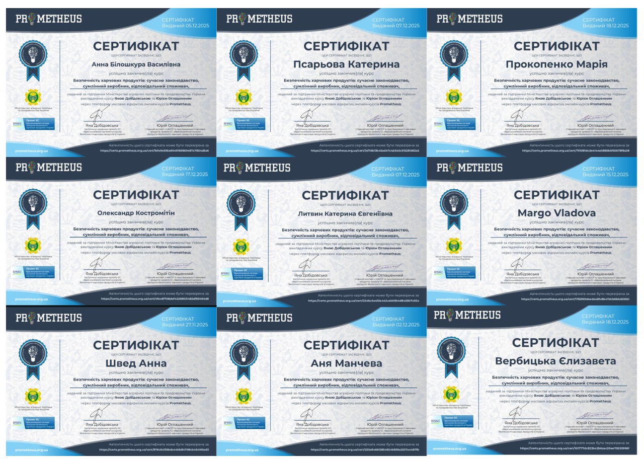 Онлайн-курс від Prometheus “Безпечністьхарчових продуктів: сучасне законодавство, сумлінний виробник, відповідальний споживач” 2024 рік